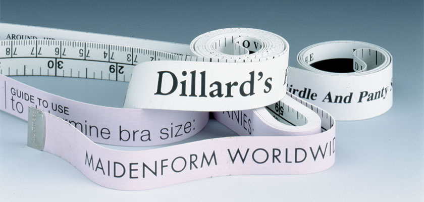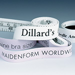 High quality PVC coated polyester fiber tapeline for the look and feel of a true tailor’s/seamstress’ tape measure. Standard configuration comes in black or white on both sides, 59 1/2" long by 3/4" wide, and has metal clips on each end. Standard measuring scale choices are inches, metric, and analogic (inches & metric). Impeccable raw material selections and flawless imprint executions provide a superior quality image. This is the highest quality “cloth” tape in the industry. Made in Germany